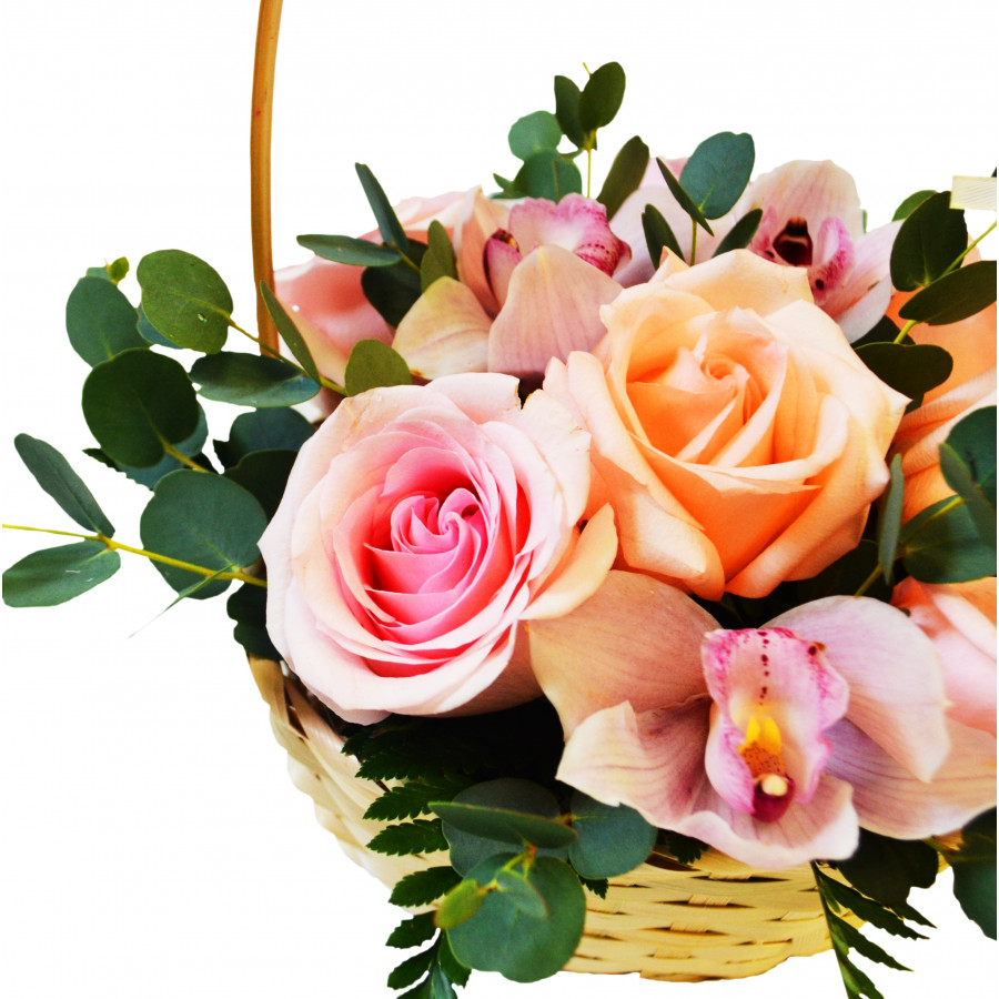 Нежная трепетная композиция из эквадорских роз, благоухающих орхидей и свежих веточек эвкалипта в романтичной плетёной корзинке с тонкими лентами лучше иных слов передаст Ваши тёплые и настоящие чувства получательнице. Композиция без слов расскажет о Ваше любви к получательнице или просто подскажет Вашей возлюбленной, насколько сильно она Вам дорога.